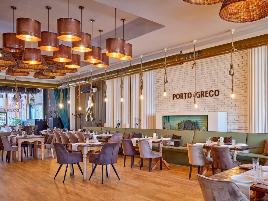 Стилен и уютен, “Porto Greco” ще предоставя изключително преживяване, идеално за споделяне на незабравими моменти с колеги, приятели и семейството. Отворен от сутрин до късно вечер, “Porto Greco” ще е идеален за бърз делови обяд, разпускащ сладък следобяд или незабравима вечеря. Перфектно място за отпразнуване и на най-специалните моменти в живота. Елегантният интериор на ресторанта създава подходяща атмосфера, както за честване на рожден ден или годишнина от значимо събитие, така и за магически годеж или други вълнуващи поводи.